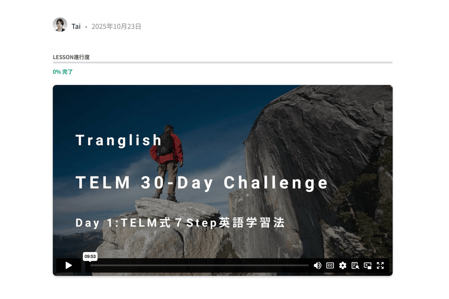 A: 30日チャレンジは「入門編」として、まず私の英語学習メソッドであるTELM7ステップの全体的な学習法を理解するためのものです。